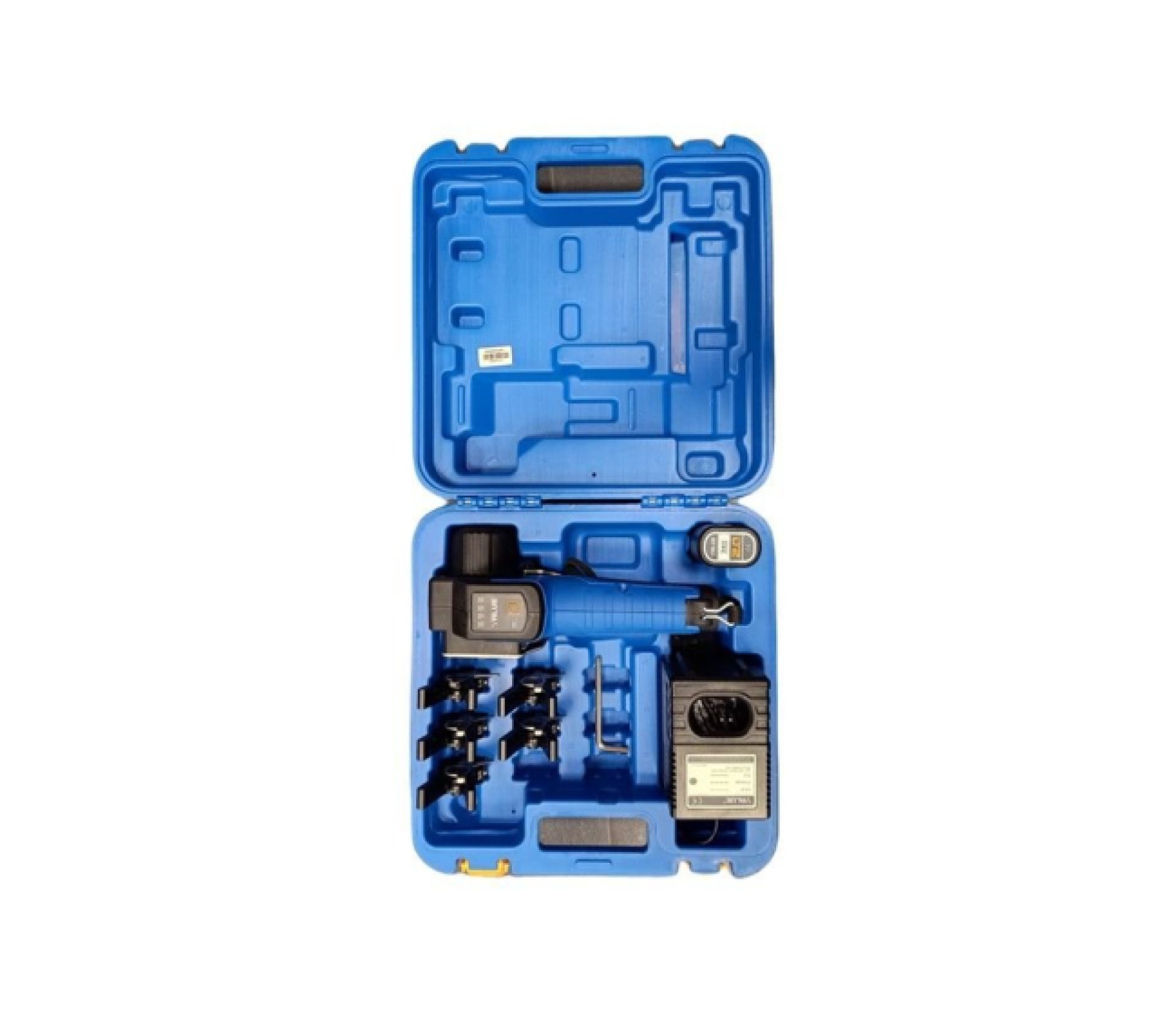 Súčasťou balenia je kompletný set: pertlovačka, batéria, nabíjačka, čeľuste a plastový kufrík.