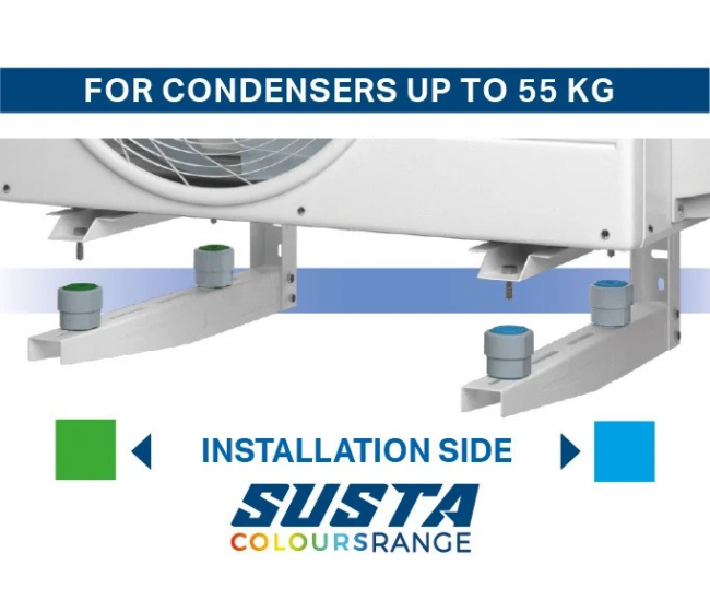 SVETLOMODRÉ tlmiče sa inštalujú na stranu oproti ochrannému krytu kondenzátora.