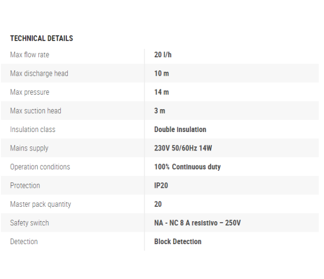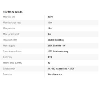 Max.tlačná výška: 10m (prietok=4L/h)