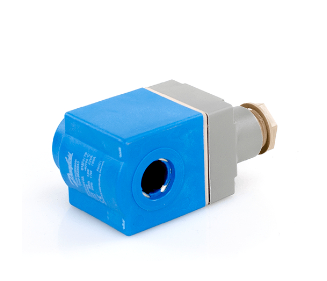 Cievka solenoidového ventilu Danfoss BG024DS, určená na použitie v chladiacich, klimatizačných a HVAC systémoch. Zapuzdrená, zacvakávací system upevnenia, pripojenie - svorkovnica, bez kabelu.