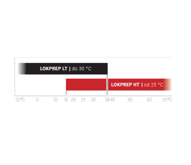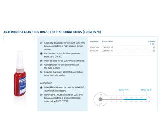 Pri teplotách okolia pod 30 °C (77 °F) sa pre mosadzné konektory LOKRING musí použiť LOKPREP LT.