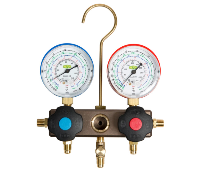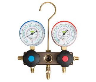Mostík je vybavený presnými Bourdonovými tlakomermi (trieda 1.6) s kovovým puzdrom, ktoré zaručujú spoľahlivé meranie aj pri vyšších tlakoch typických pre tieto chladivá. Robustný hliníkový blok zabezpečuje dlhú životnosť aj pri intenzívnom používaní.