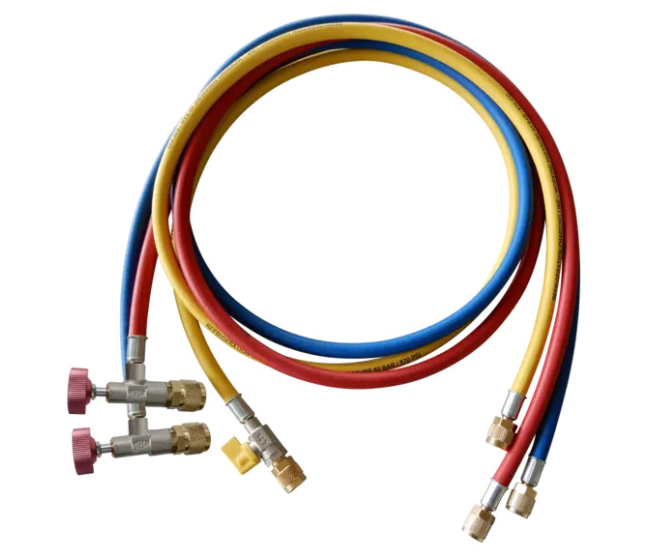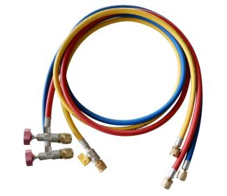 Súčasťou balenia sú plniace hadice prispôsobené pre R32/R410A (vrátane 5/16" SAE pripojení), vďaka čomu je set plne kompatibilný s modernými HVAC-R systémami. Všetko je uložené v praktickom a odolnom plastovom kufri.