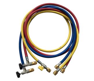 3 plniace hadice (modrá, červená, žltá) – dĺžka 150 cm (60"), všetky s 1/4" SAE pripojením