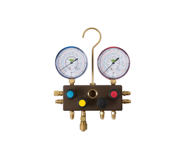 Profesionálny 4-cestný manometer (manifold set) je určený pre servis a údržbu chladiacich a klimatizačných systémov pracujúcich s chladivami R32, R410A a R407C. Ide o kompletný set s prémiovým príslušenstvom, vhodný pre náročné HVAC-R aplikácie.