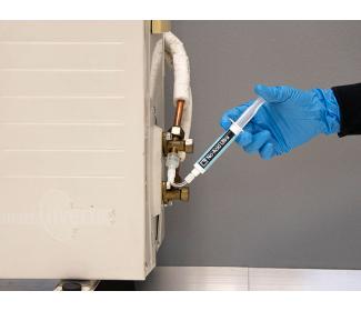Vysoko bezpečné zloženie: Extreme Leak Stopper bez polymérov nereaguje na vlhkosť a kyslík a neblokuje komponenty klimatizačných a chladiacich systémov.