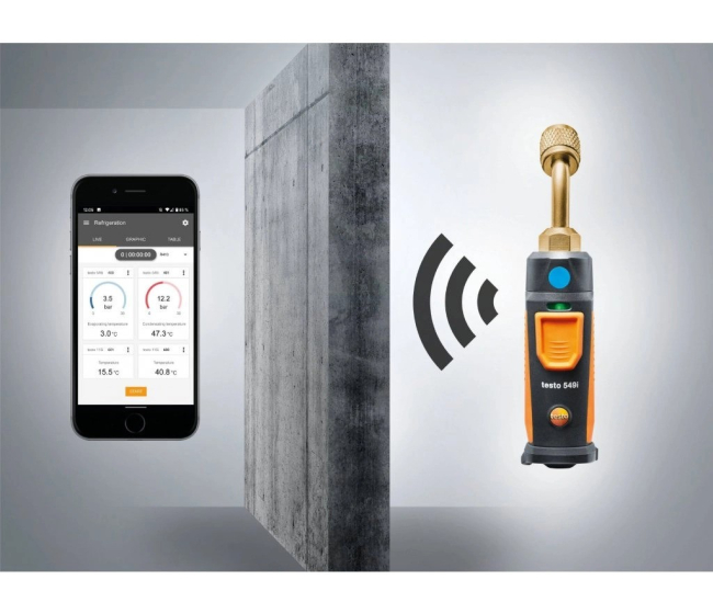 Praktický prístroj na meranie vysokého tlaku testo 549i, v kombinácii so smartfónom alebo tabletom, je vhodný na detekciu porúch u klimatizačných a chladiacich systémov, obsluhu daných systémov a zároveň aj pre ich uvedenie do prevádzky. Merací prístroj je možné rýchlo a jednoducho pripojiť priamo k tlakovej prípojke. Pri práci s tlakovými prípojkami, ktoré sú ďaleko od seba, testo 549i celý proces merania značne zjednodušuje – vďaka Bluetooth spojeniu so smartfónom alebo tabletom. ďalšia výhoda: keďže na meranie nie sú potrebné žiadne hadice, stratí sa veľmi málo, alebo vôbec žiadne chladivo. A ak je zároveň použitý Bluetooth kliešťový teplomer testo 115i, je možné vypočítať jednotlivé parametre chladiaceho systému (napr. prehriatie).Vďaka aplikácii testo Smart Probes App nainštalovanej na Vašom mobilnom zariadení môžete pohodlne odčítať namerané hodnoty. Aplikácia naviac ponúka automatický výpočet výparnej a kondenzačnej teploty. Všetky namerané údaje sú zobrazené vo forme grafu alebo tabuľky. Protokoly merania je potom možné zaslať rovno e-mailom vo formáte *.pdf alebo *.xls.