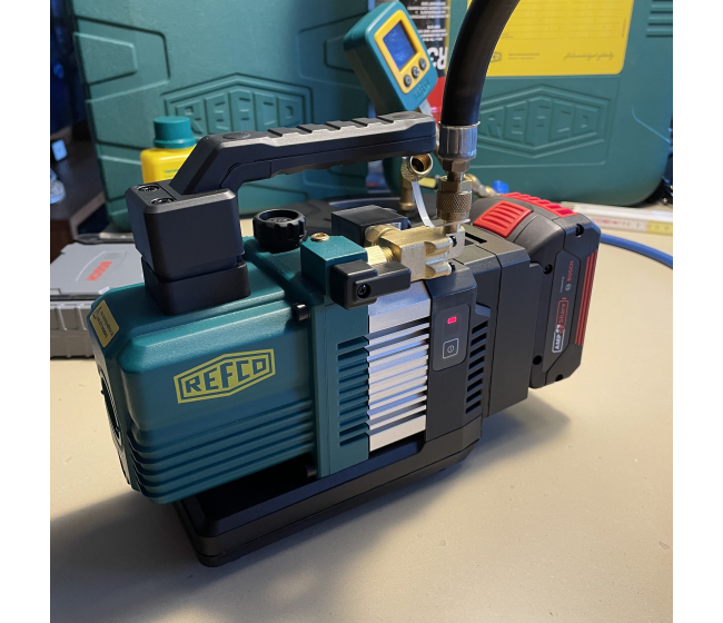 Osloboďte sa od káblov pri servise klimatizácií a chladiacich systémov. REFCO ECO-2-A2L-e je vysoko výkonná, dvojstupňová vákuová pumpa navrhnutá pre maximálnu mobilitu bez kompromisov v sile vákua. Vďaka prevádzke na 18V akumulátor je ideálnym partnerom pre prácu na strechách, rebríkoch a v miestach bez prístupu k elektrickej sieti.