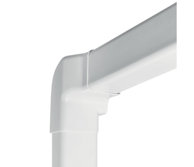 Použitie: spája žľaby s otočením o 90°, umožňuje viesť žľaby klimatizácie v ľavom vertikálnom smere, napríklad zo steny na stenu alebo zo steny na strop. Farba: Čistá biela, snehovo biela.
