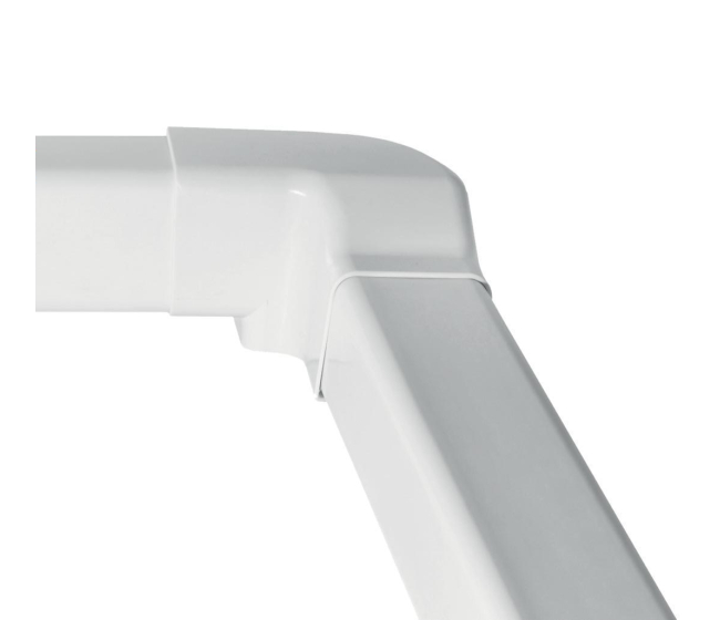 Použitie: spája žľaby s otočením o 90°, umožňuje viesť žľaby klimatizácie v pravom vertikálnom smere, napríklad zo steny na stenu alebo zo steny na strop. Farba: Čistá biela, snehovo biela.