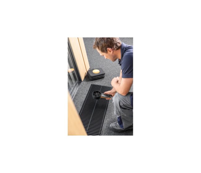 Kompaktný vrtuľkový anemometer testo 417 v sade s dvoma meracími kužeľmi, ktorá bola vyvinutá tak, aby Vám čo najviac uľahčila meranie na prívodoch vzduchu a vzduchových výustkách a tiež na tanierových ventiloch pri klimatizačných a ventilačných systémoch. Integrovaná vrtuľka s priemerom 100 mm Vám rýchlo zaistí presné výsledky. Časové a bodové stredné hodnoty aj objemový prietok sa automaticky vypočítavajú v prístroji a zobrazujú sa na displeji. To umožňuje obzvlášť efektívne nastavenie vyváženého vetrania bytových priestorov – vrátane rýchlej dokumentácie v aplikácii testo Smart App.