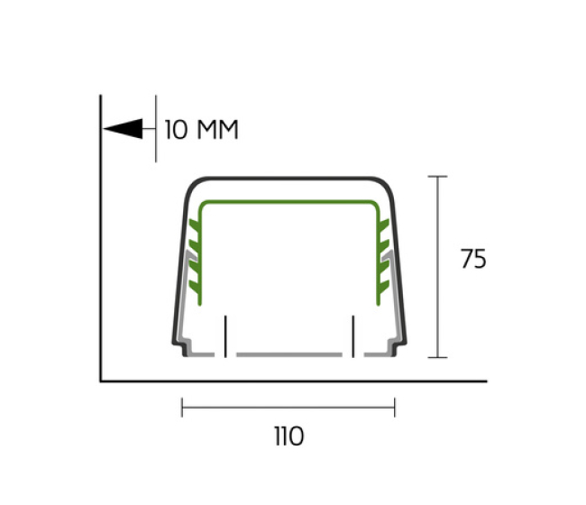 Žľab 1212BCF-W je vyrobený z pevného a odolného PVC materiálu. Je vybavený ochrannou fóliou. Odolný voči UV žiareniu. Rozmery: 110 x 75 x 2000 mm (Š x V x D). Balenie obsahuje 8m.